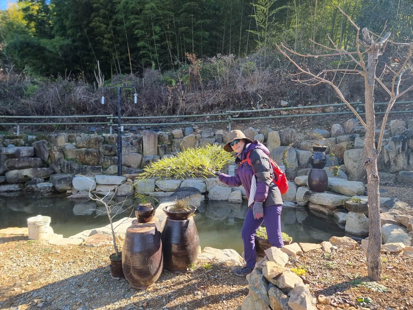연못을 조성하고 부근에 항아리와 나무들을 조화롭게 배치하여 가꾸는 모습이 좋아 보였다.